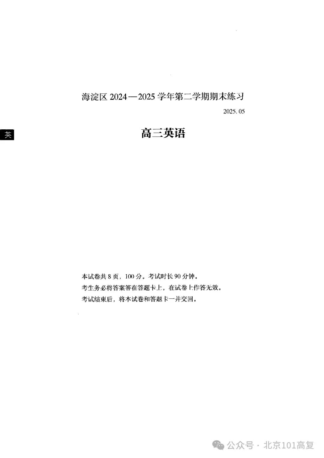 海淀区2024-2025学年高三年级二模考试英语试题
