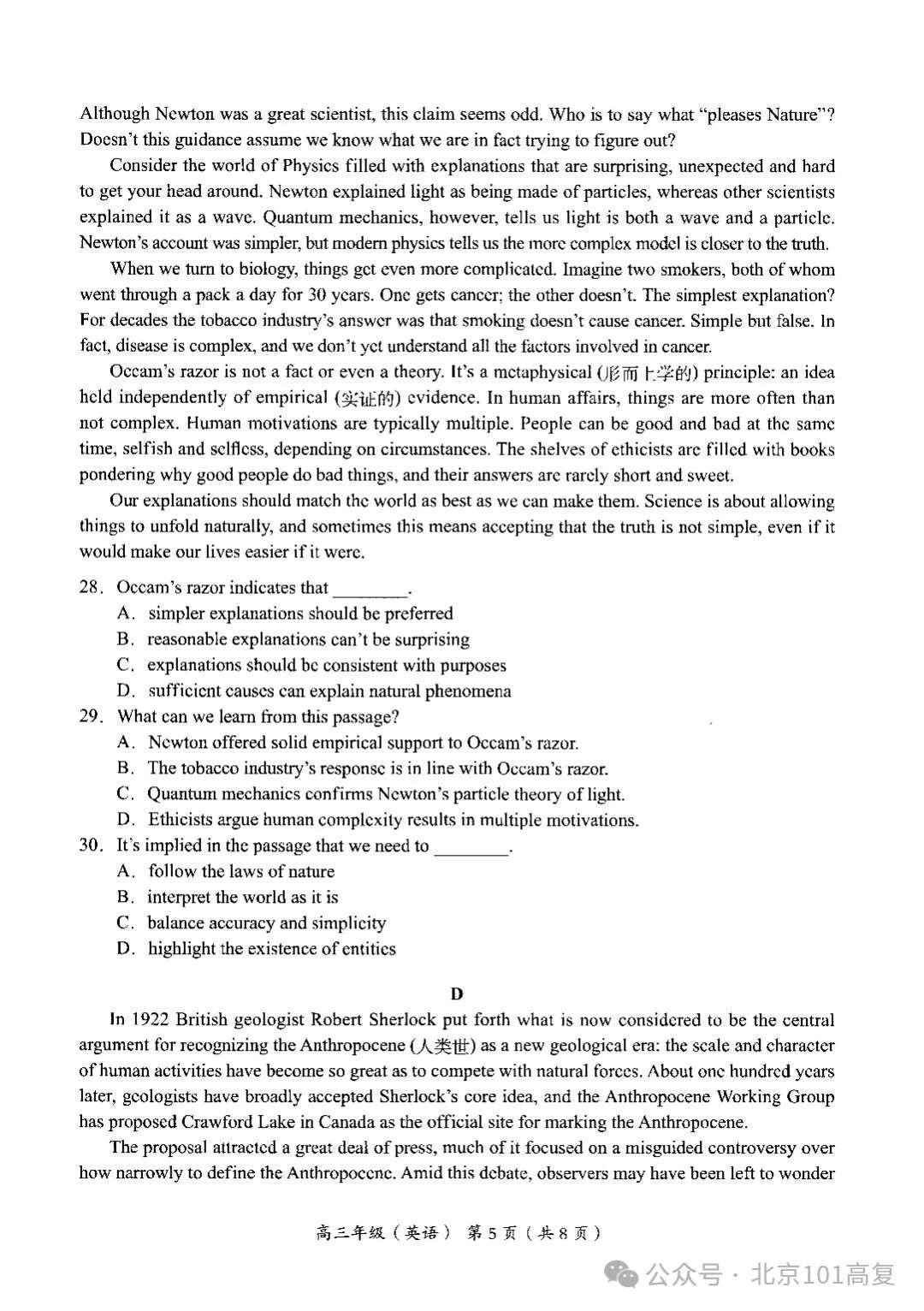 北京101高考复读
