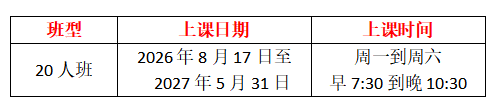 高考:针对2027年参加高考的应、往届高三毕业生、京籍返京生,2026年8月17日至2027年5月31日上课,周一至周六上课,白天晚上都有正课,任课老师答疑,保证教学效果。食宿一体,有师傅专门做饭,一日三餐;每个班级有专职班主任,每个宿舍都配备一位宿管老师跟着一起住宿,保证按时作息,提高学习效率;可以与家长签订协议,针对每位学生设计个性化培养方案,如没有实现约定,双倍退还协议费。
